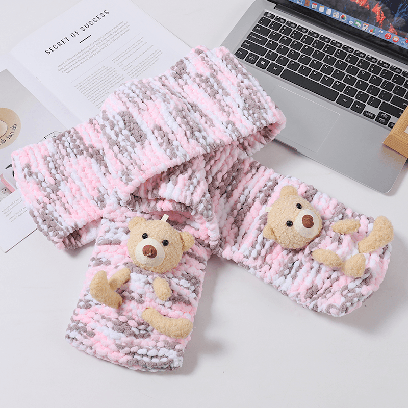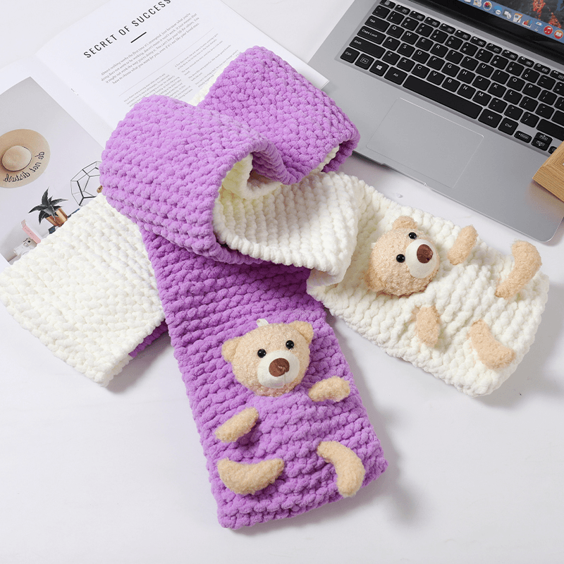 口袋熊小熊围巾手工diy毛线编织手织围脖送女朋友男朋友礼物成品