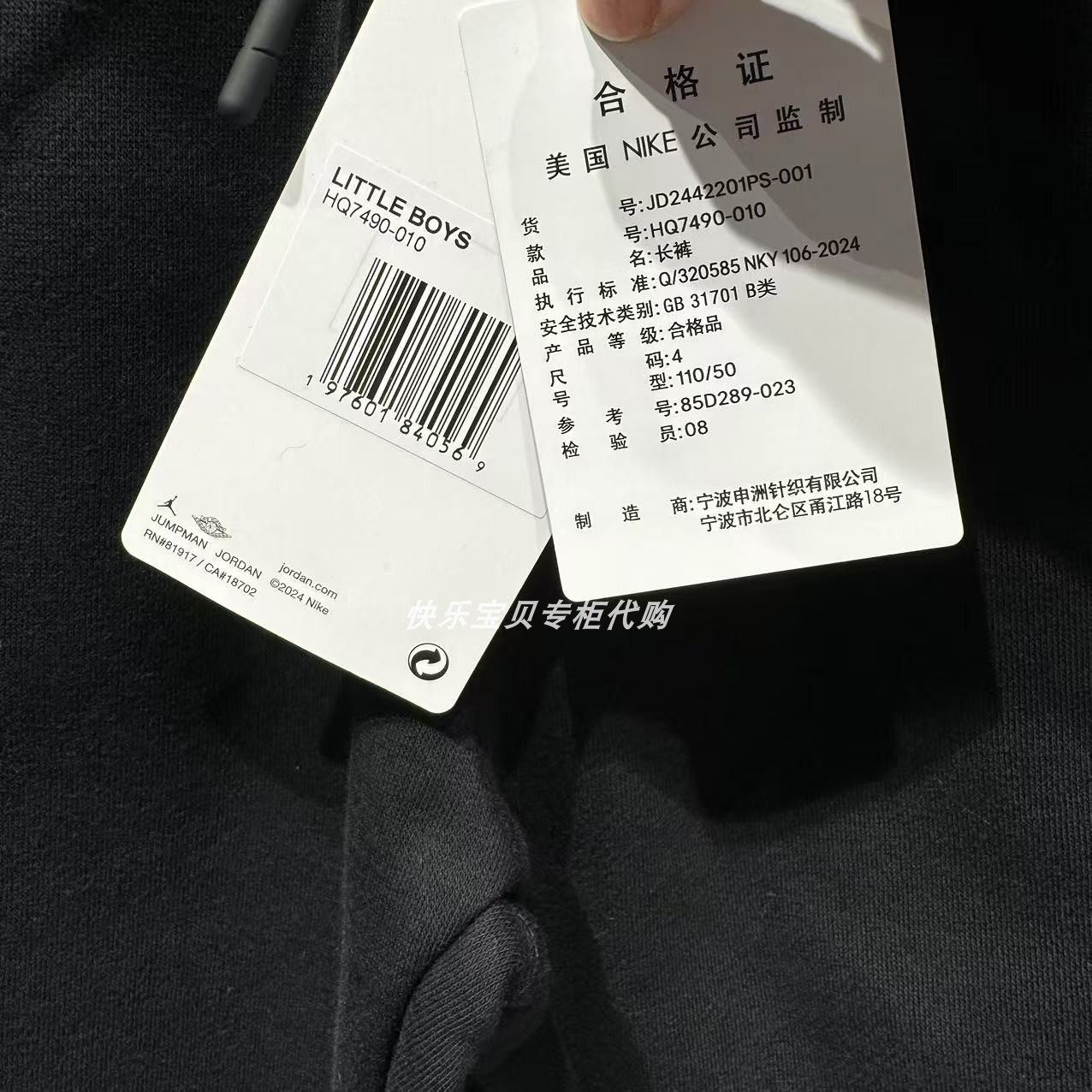 JORDAN乔丹24冬男女儿童针织加绒宽松休闲运动收口长裤JD2442201