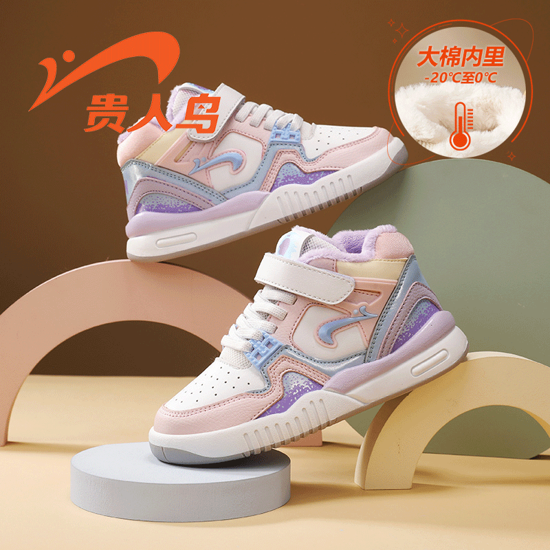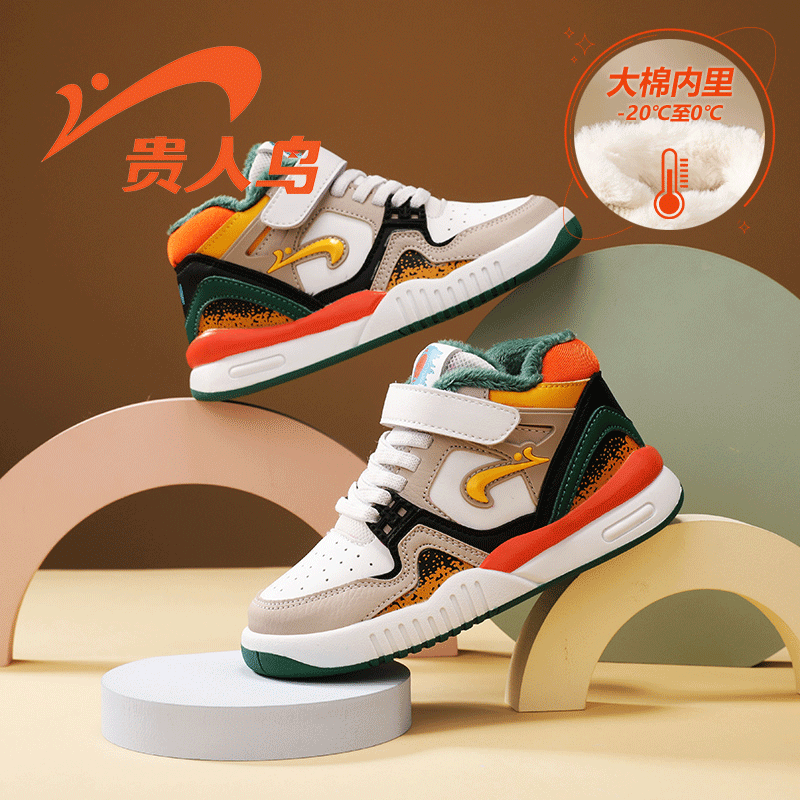 贵人鸟童鞋2025秋冬皮面潮流休闲男童运动鞋加绒大棉保暖女童板鞋