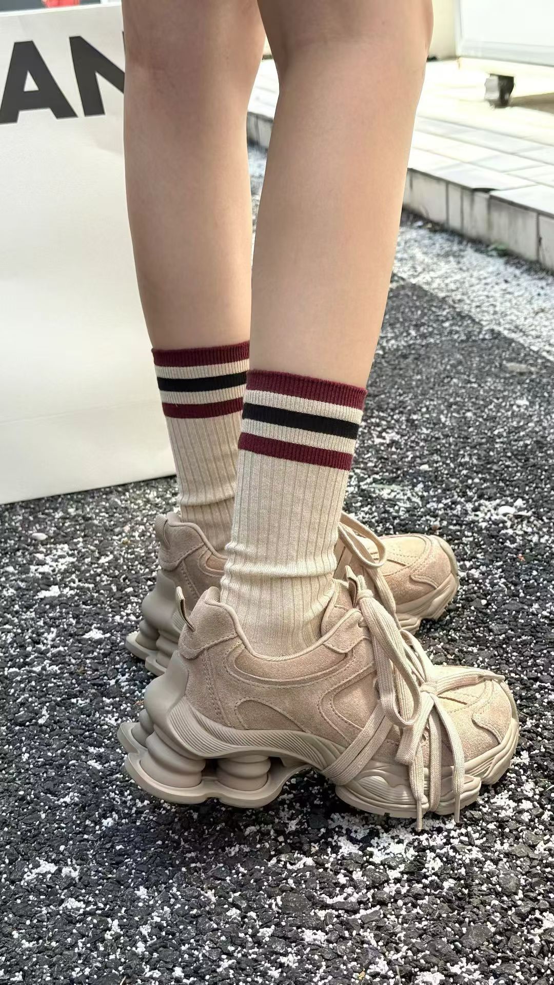 欧洲站女鞋2025秋季新款时尚厚底磨砂皮复古系带休闲老爹鞋女