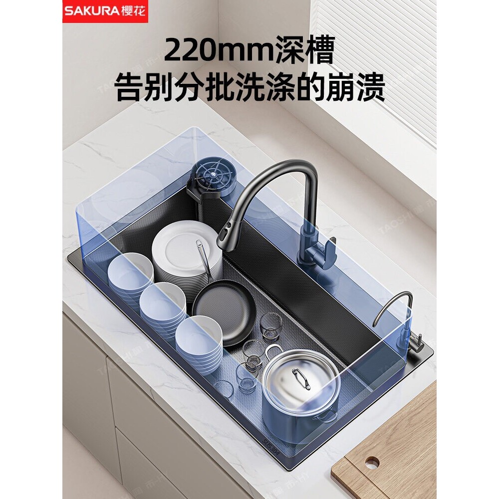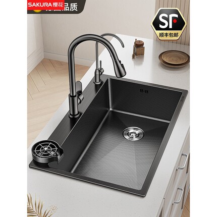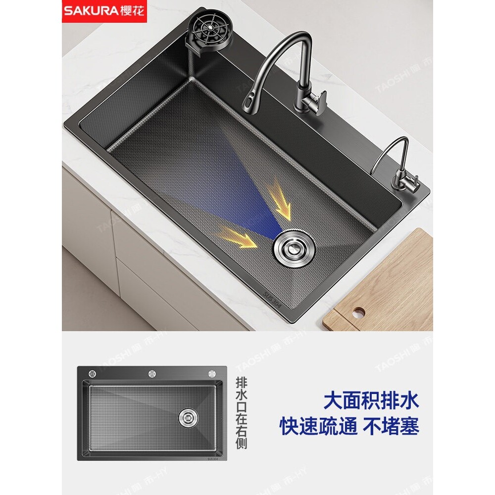樱花304不锈钢厨房洗菜盆双槽改大单槽60x69x38/72x40/7540/7843/