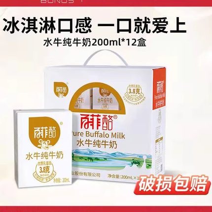 广西百菲酪水牛纯牛奶200ml*12盒儿童学生营养早餐高钙奶团购牛奶