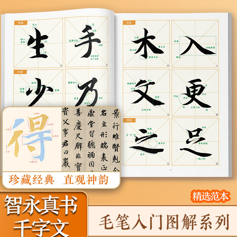 墨点字帖 智永真书《千字文》入门图解 曹全碑毛笔碑帖单字放大视频教程笔法教学楷书毛笔书法临摹字帖初学者入门练字帖