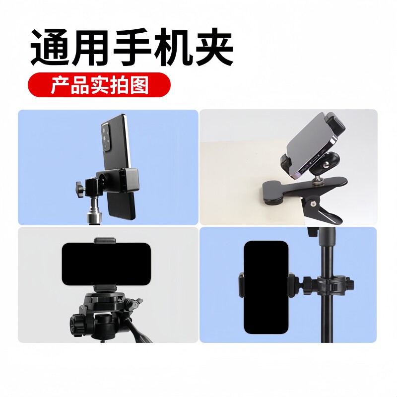 手机夹三脚架手机固定夹背夹直播支架零件配件自拍杆拍摄支夹金属云台万向头手机夹子固定器手机架通用夹子头