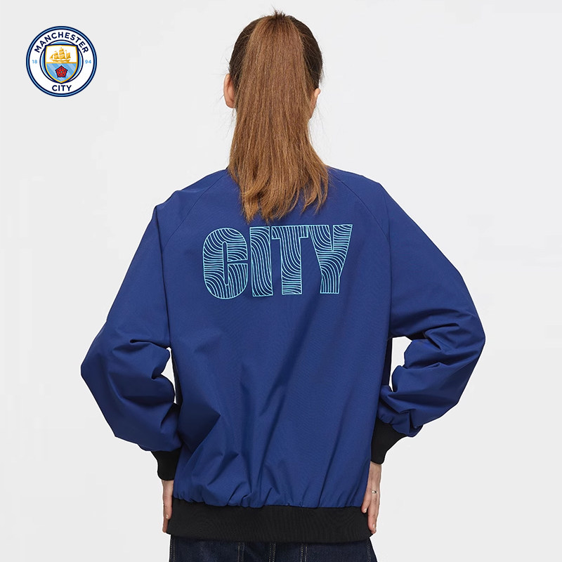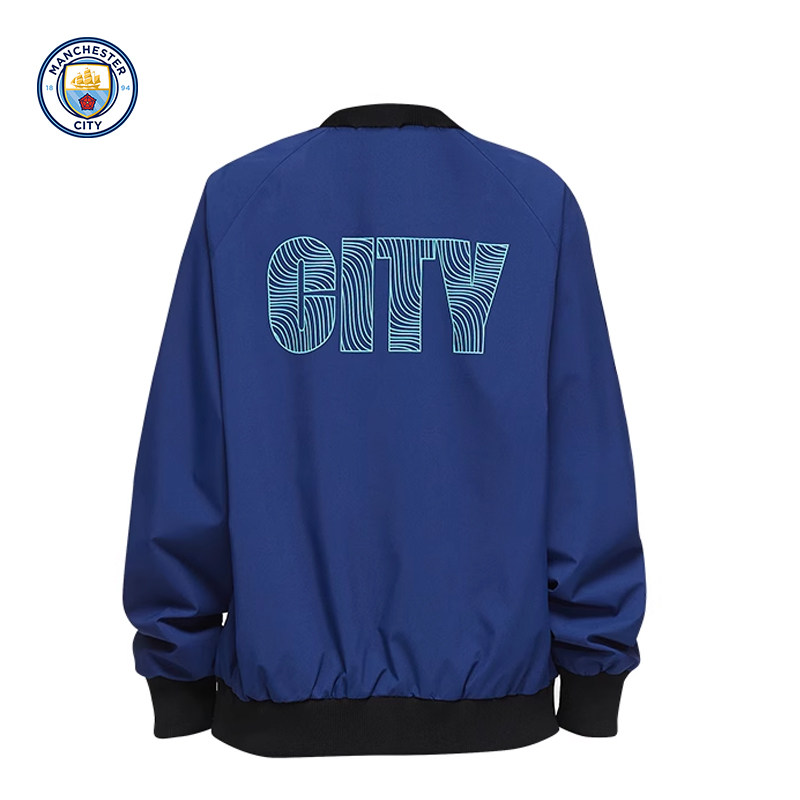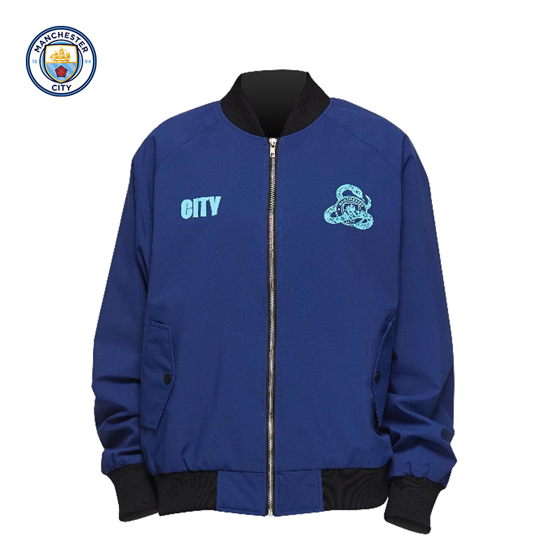 曼城2025蛇年夹克外套深蓝圆领拉链宽松上衣