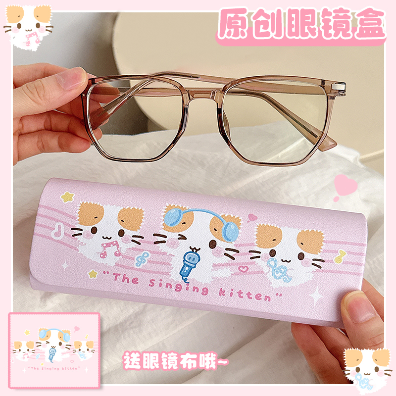 棉花糖猫眼镜盒女款学生抗压便携眼睛盒磁吸闭合儿童眼镜收纳盒子