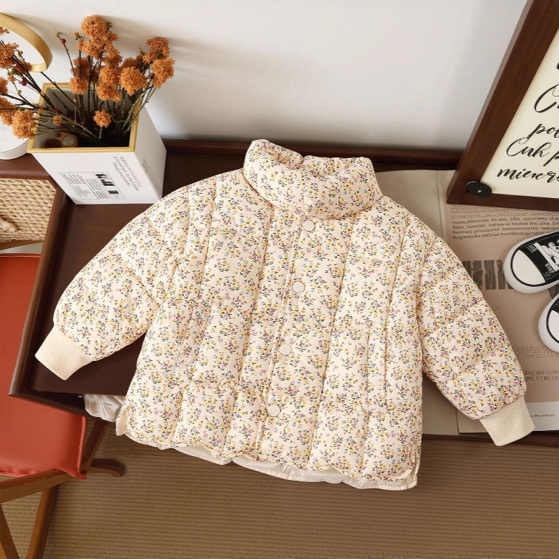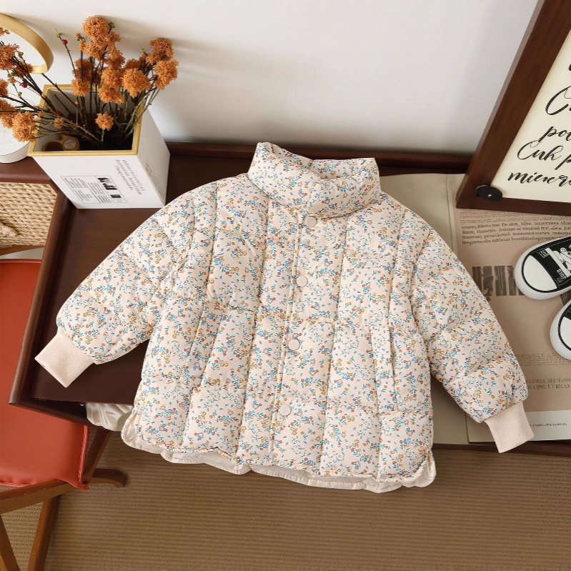 三折品牌撤柜童装中小童女童冬季款新款立领保暖碎花羽绒棉服外套