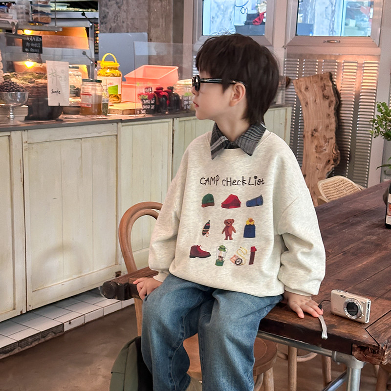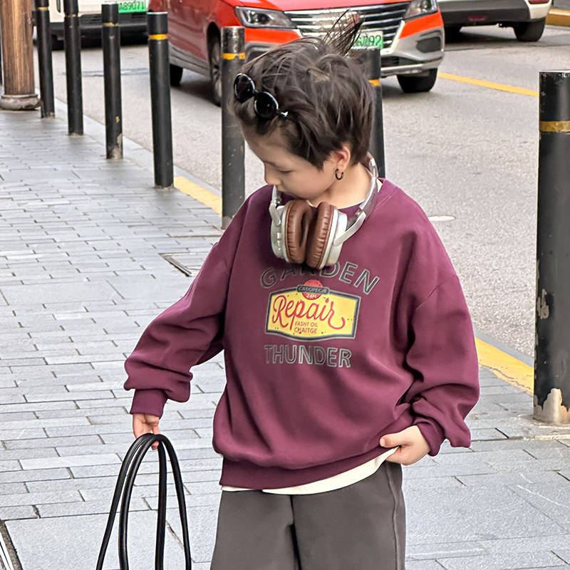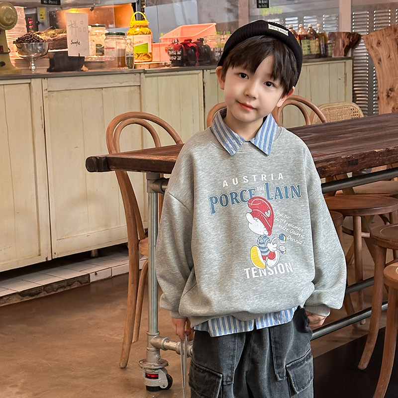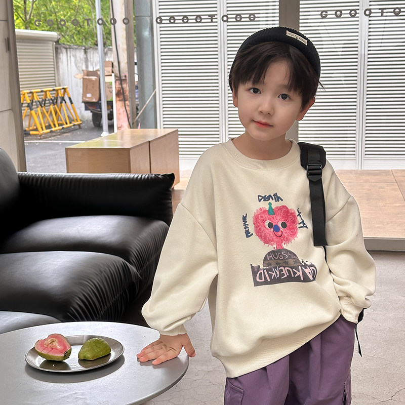 依依妈男童字母卡童印花卫衣儿童春装上衣宝宝宽松圆领休闲打底衫