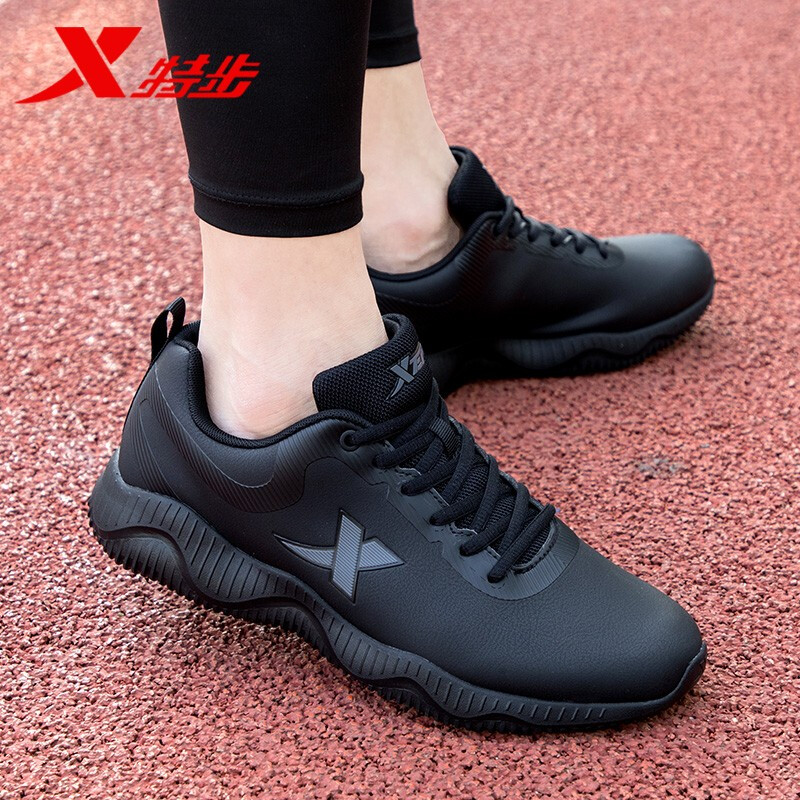 特步运动鞋男鞋2025夏季新款皮面防水跑步鞋秋冬黑色官方旗舰鞋子