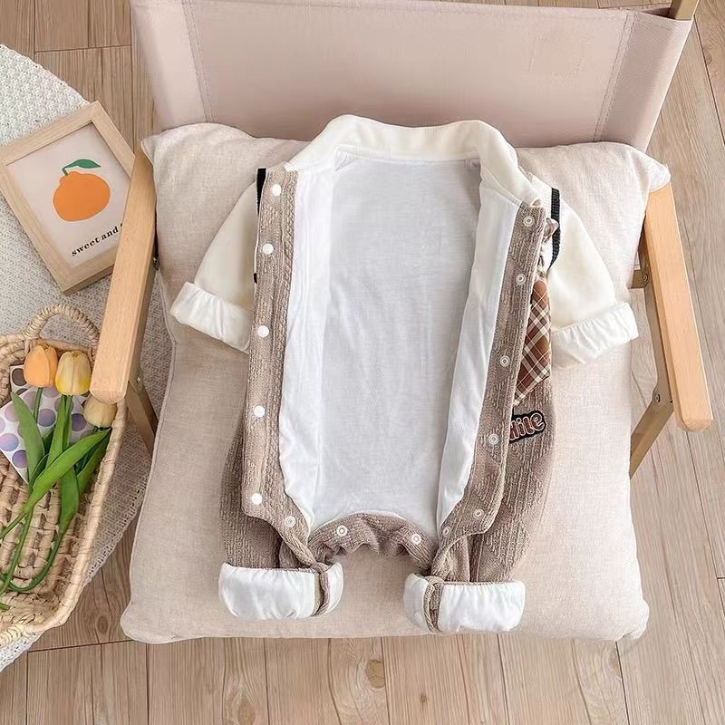 婴儿衣服长袖新生秋季宝宝连体衣学院双层春秋哈衣纯棉可爱爬服