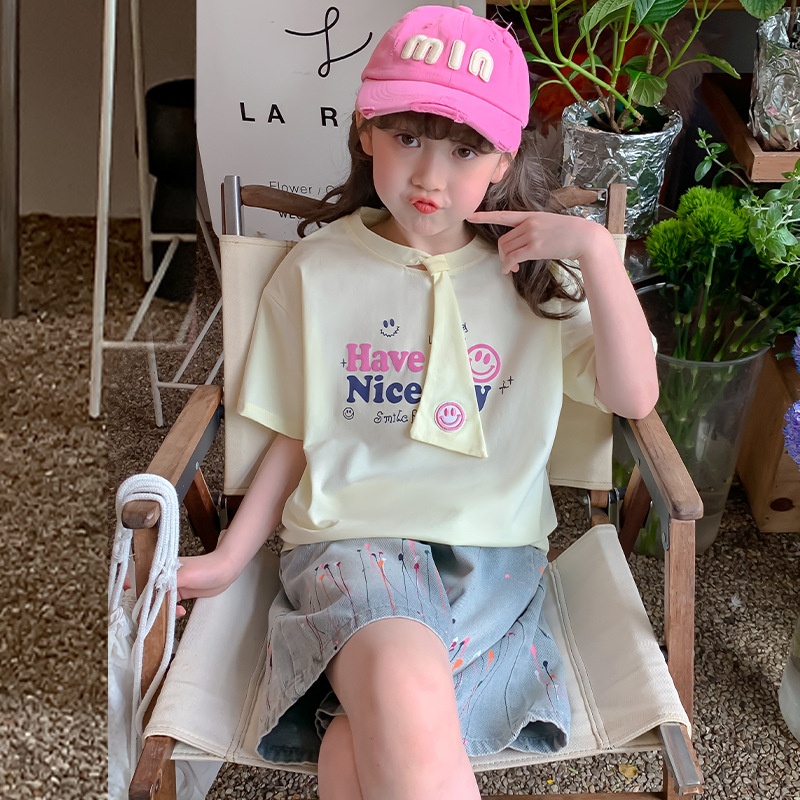 女童套装夏季薄款2025新款洋气儿童夏装短袖牛仔短裤中大童两件套