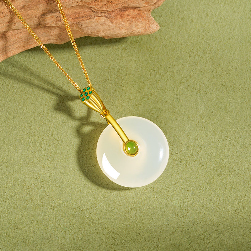 慕溪源好运莲莲平安扣吊坠女冰种玉髓玛瑙项链国风锁骨链送女朋友