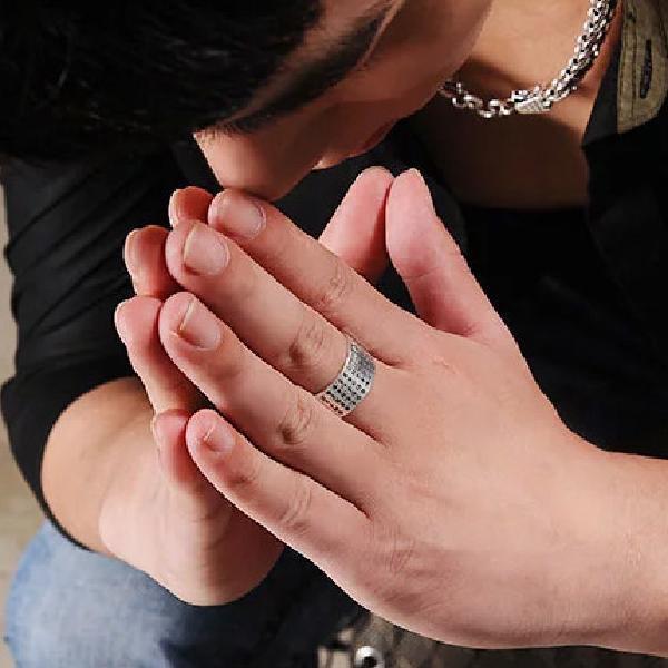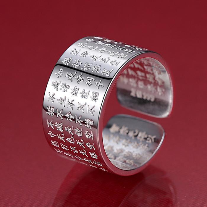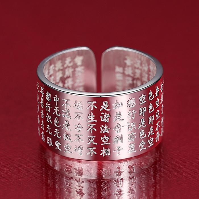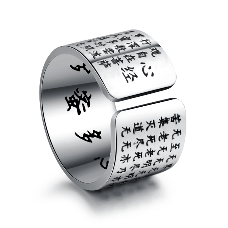 般若心经纯银饰男士戒指复古风活口可调节食尾戒子宽大潮霸气指环