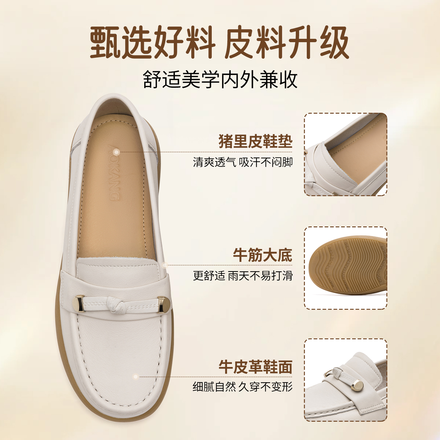奥康 女鞋2025秋季舒软鞋真皮妈妈鞋一脚蹬舒适懒人鞋通勤平底