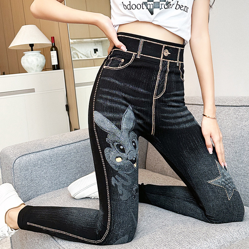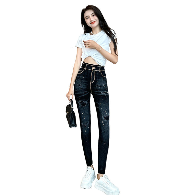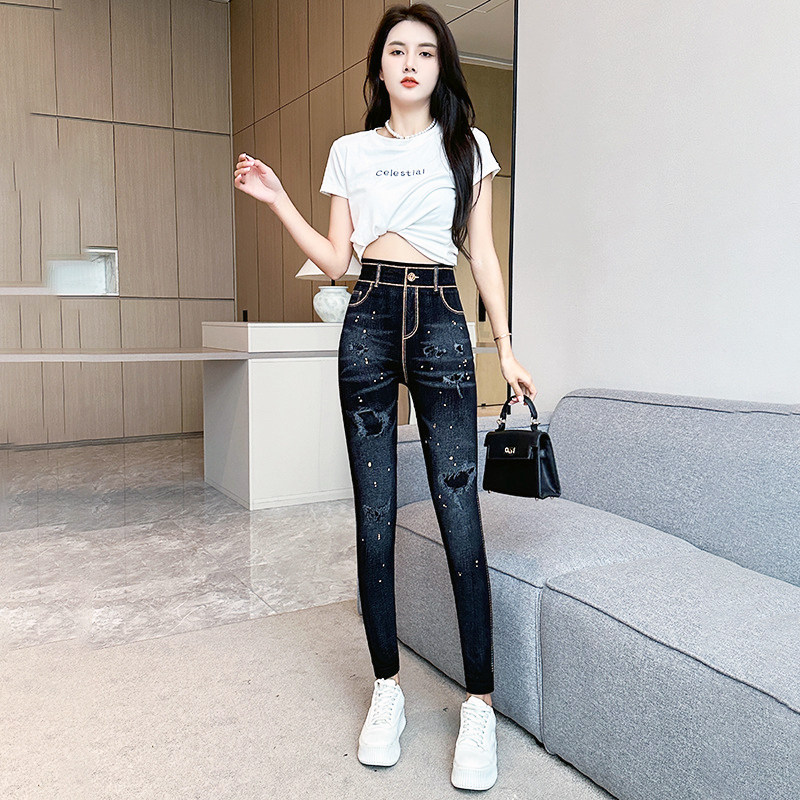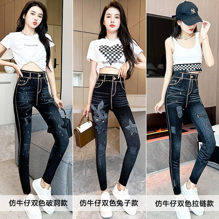 2025新款春秋冬季女式薄款显瘦仿牛仔高弹力小脚外穿九分打底裤子