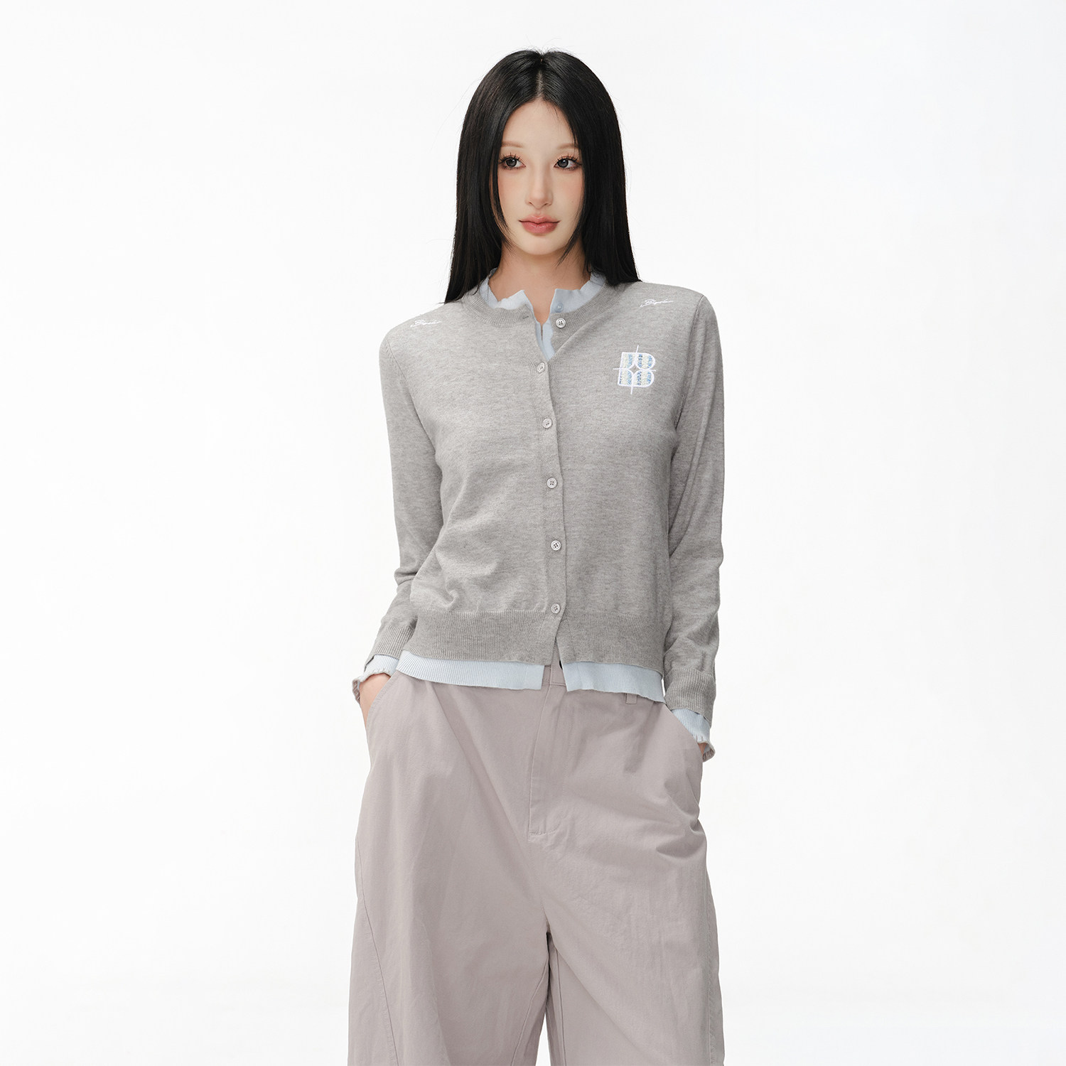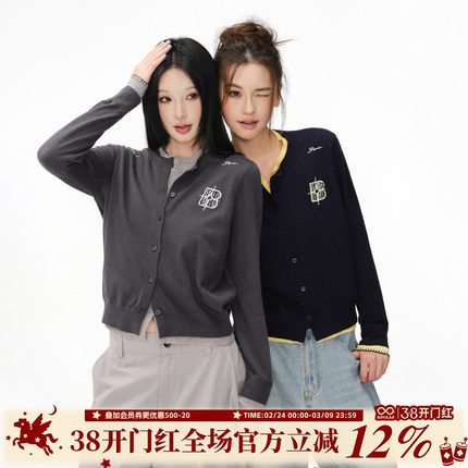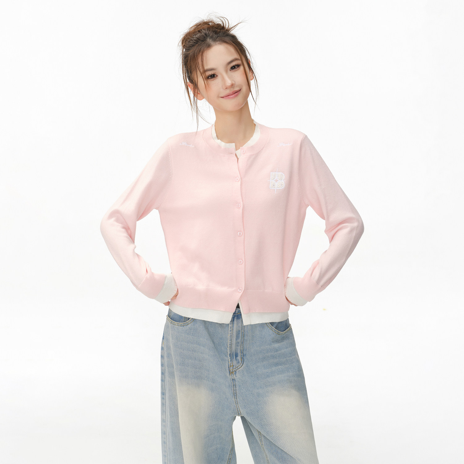 BIPOLAR 假两件开衫毛衣春秋圆领复古美式学院风青春潮流针织上衣