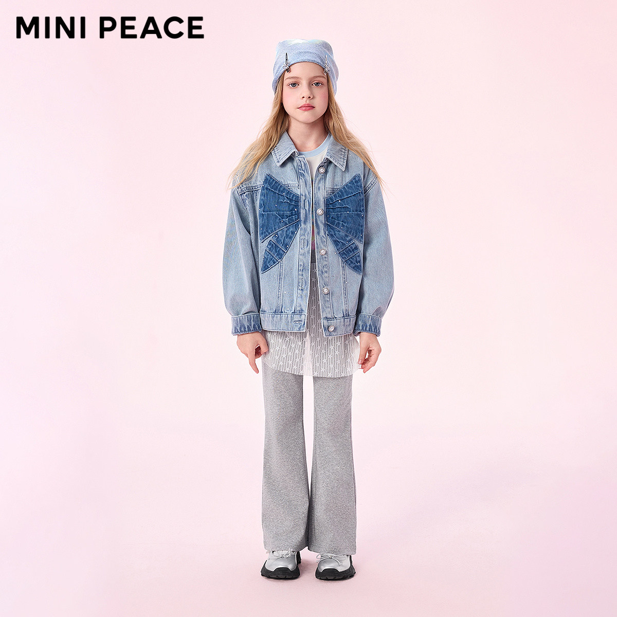 MINIPEACE太平鸟童装女童牛仔外套儿童秋装女宝夹克蝴蝶结甜美新