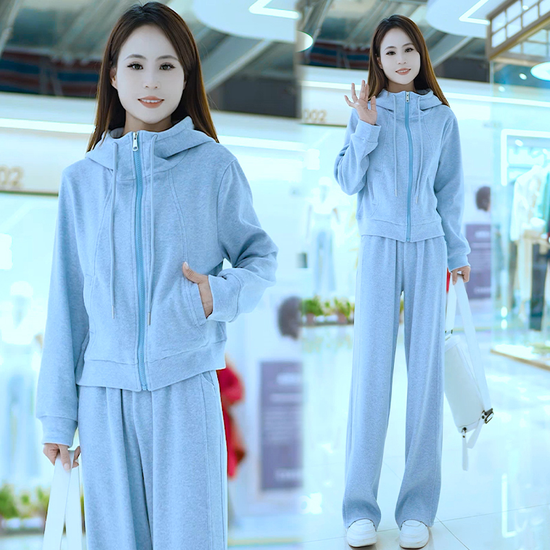 秋季连帽卫衣运动服套装女2025新款韩版时尚休闲宽松阔腿裤两件套