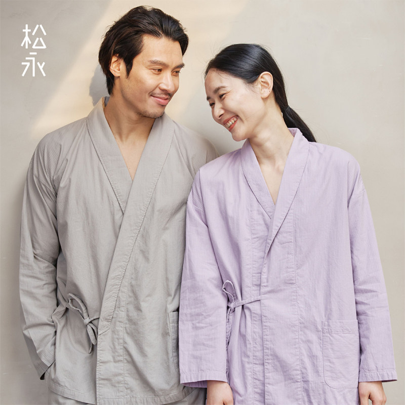 松永25年新款春夏汉服和服男女日式浴衣全棉情侣睡衣家居服套装薄