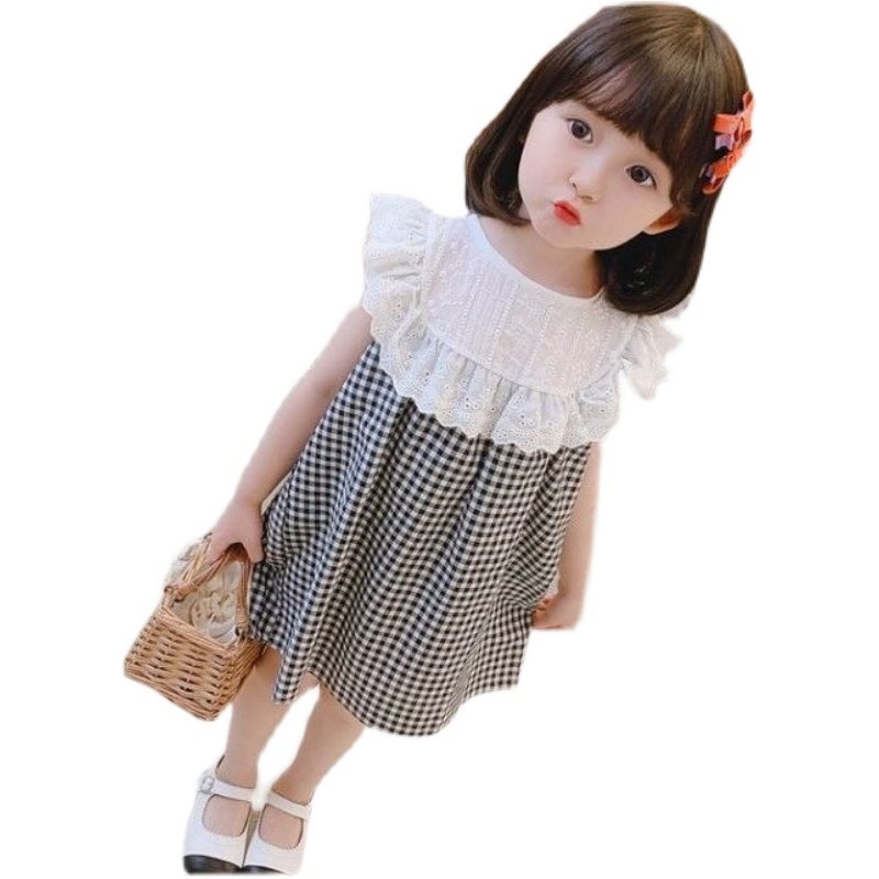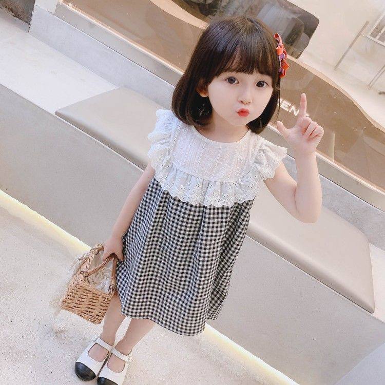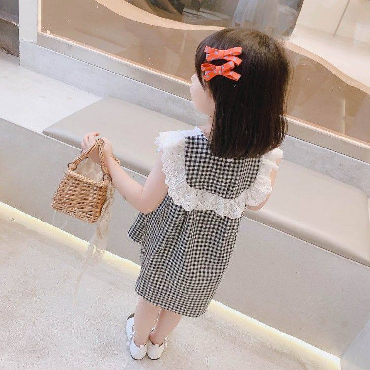 女童2022新款连衣裙儿童纯棉格子背心公主裙子宝宝洋气薄款夏装季