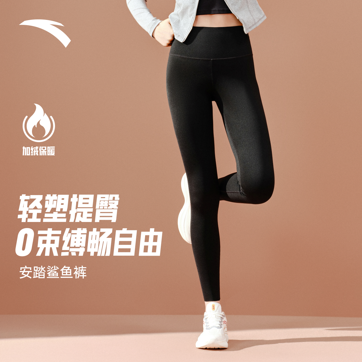 安踏鲨鱼裤女新款加绒高腰提臀收腹外穿瑜伽裤显瘦加厚打底裤长裤