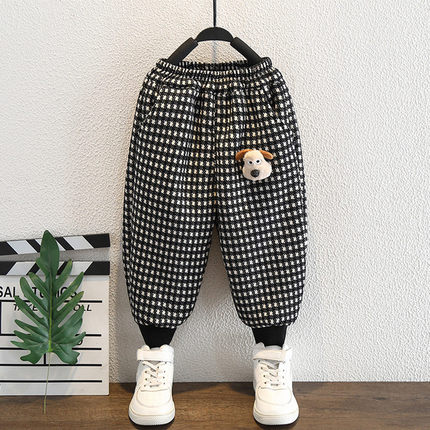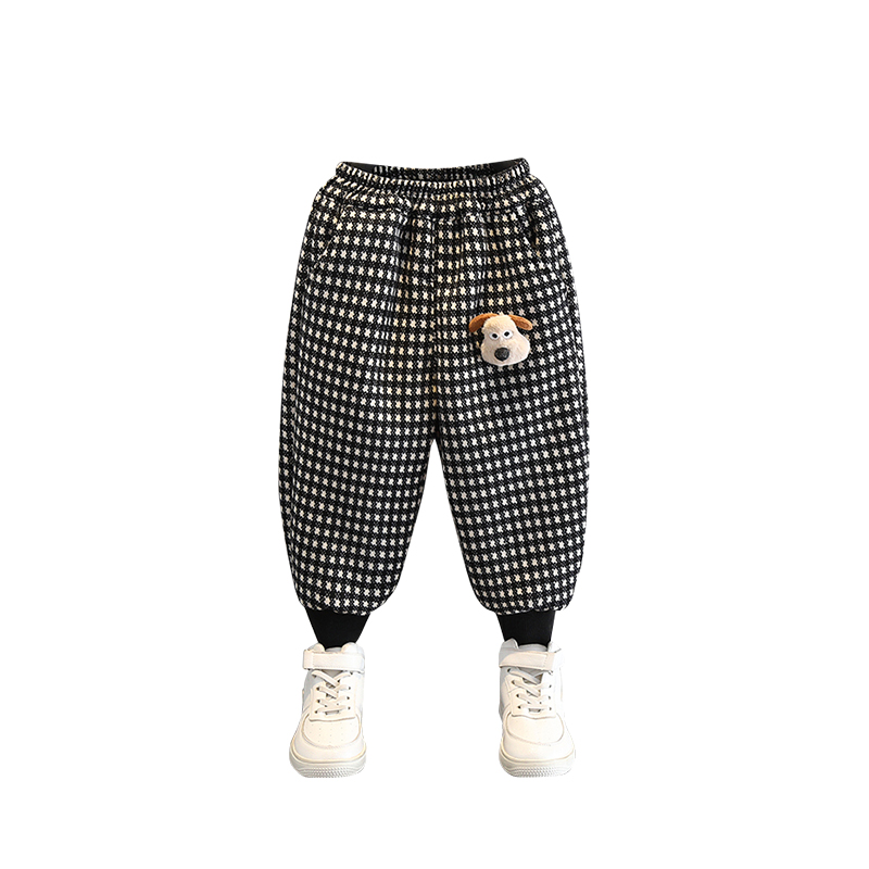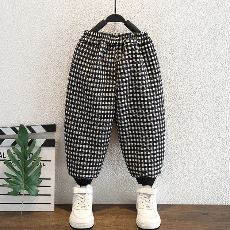 男童秋冬加绒裤子中大童冬季一体绒卫裤冬装保暖长裤千鸟格休闲裤