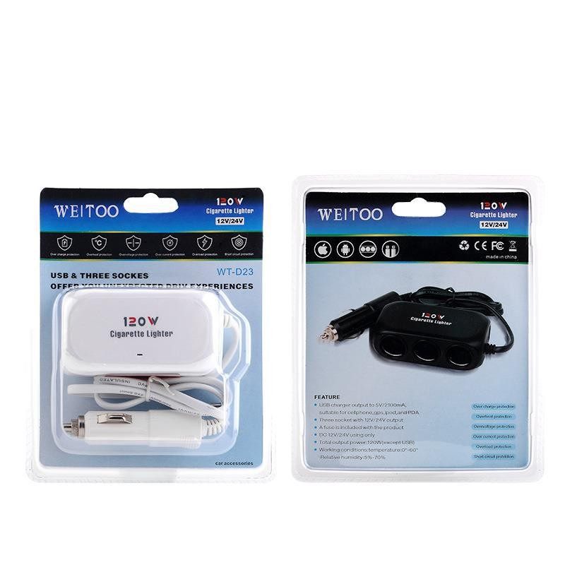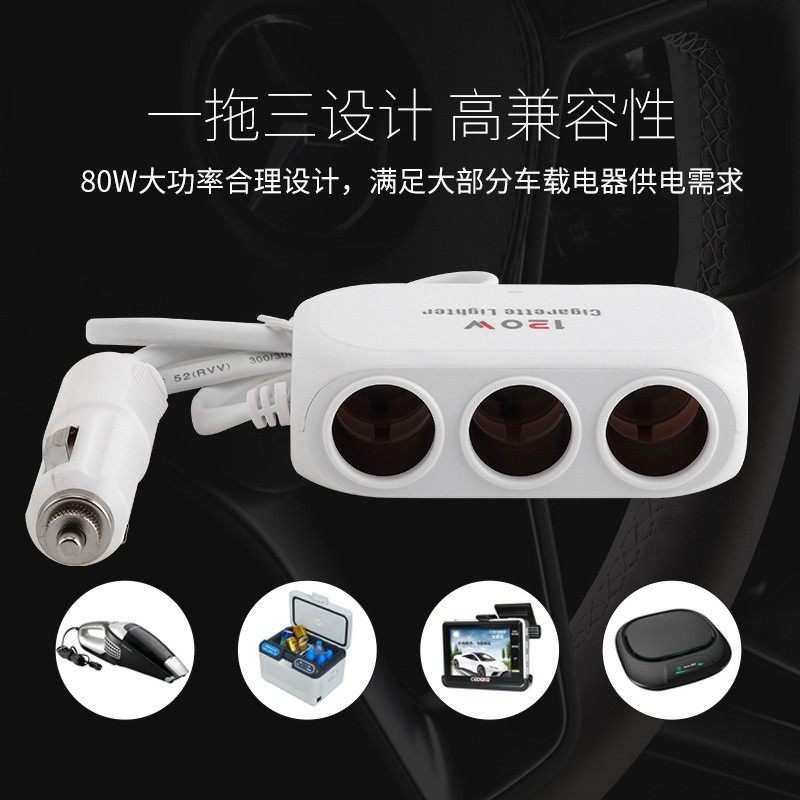 汽车一拖三点烟器 电源分配器双USB多功能一拖三车载点烟器车充