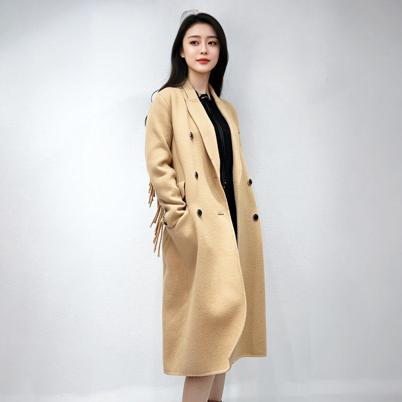 季候风双面毛呢宽松版显瘦保暖流苏时尚绵羊毛大衣外套0834da219