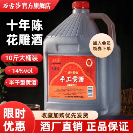 绍兴产黄酒万古沙官方旗舰店十年陈花雕酒10斤加饭老酒饮用料酒