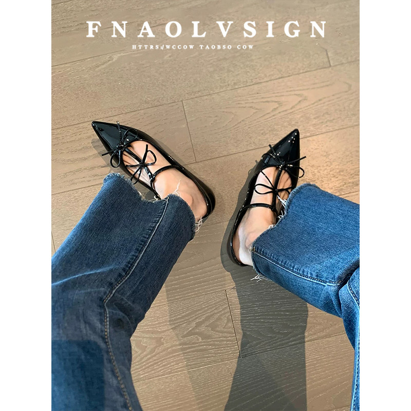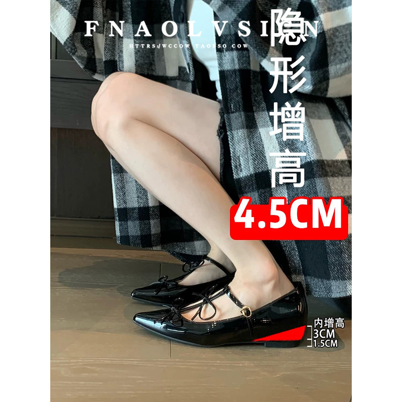 羊皮版~法式蝴蝶结尖头内增高一字扣带玛丽珍鞋子浅口平底单鞋女