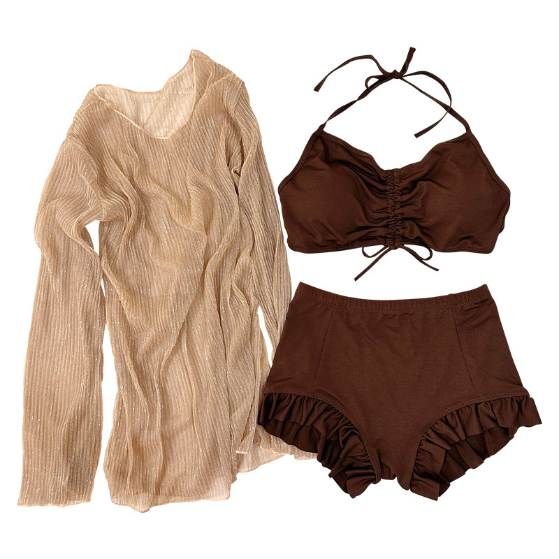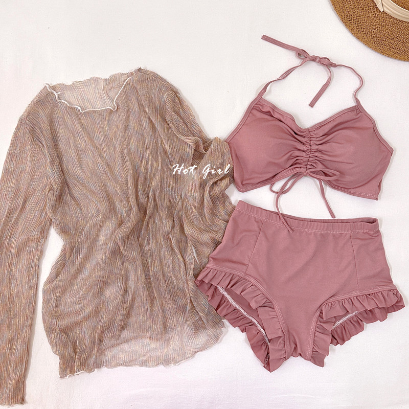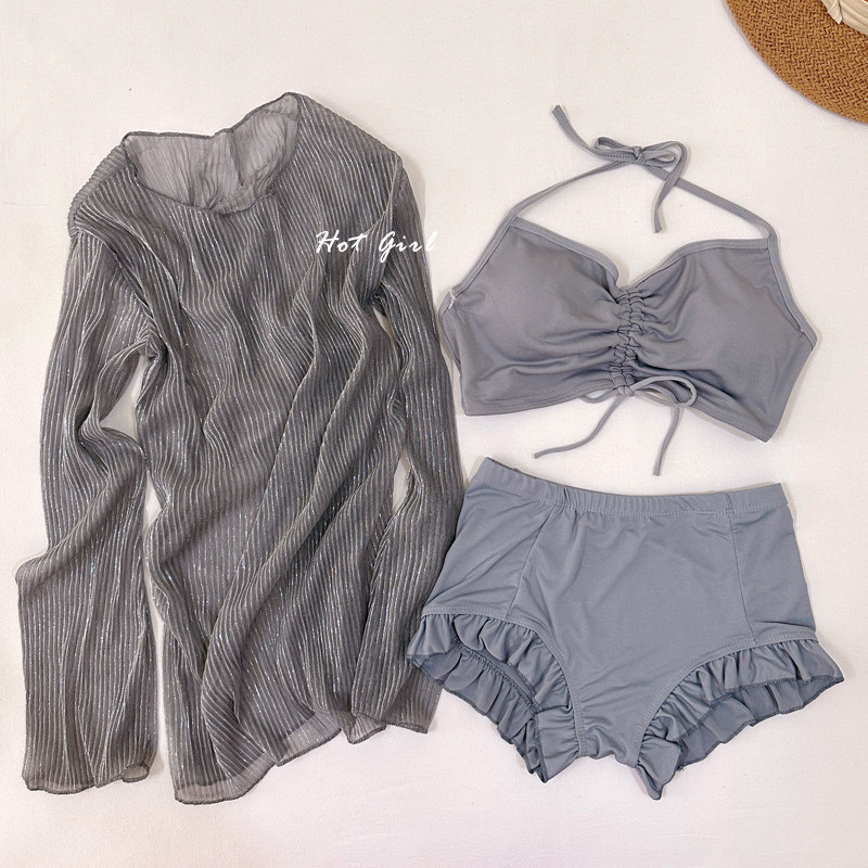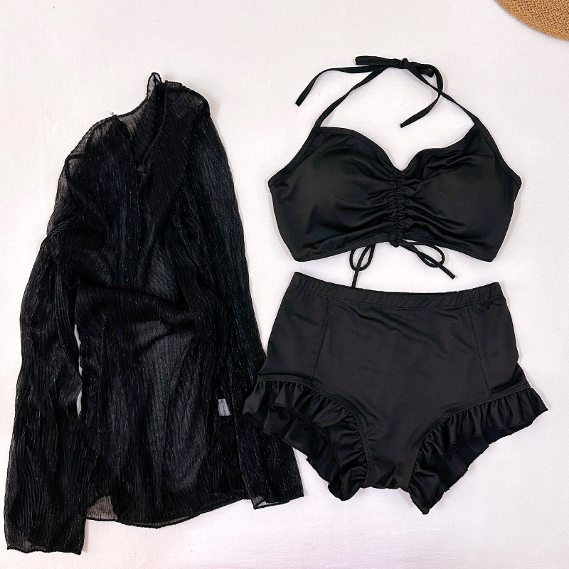 泳衣女款夏2023新款分体性感游泳装遮肉显瘦长袖防晒罩衫学生保守