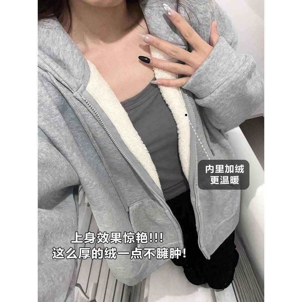 卫衣厚外套女反季2025春秋新款小个子加绒加厚保暖开衫羊羔毛绒