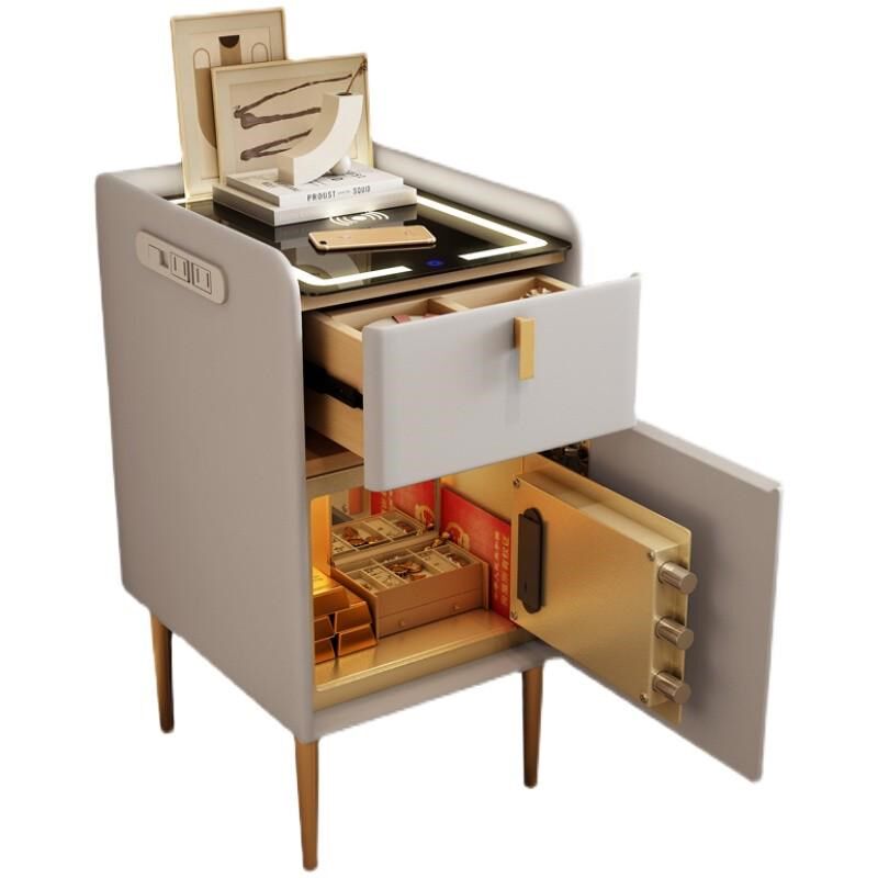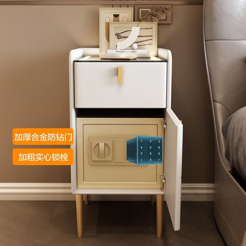 实木床头柜保险箱一体智能小型简约现代带家用防盗极窄多功能卧室