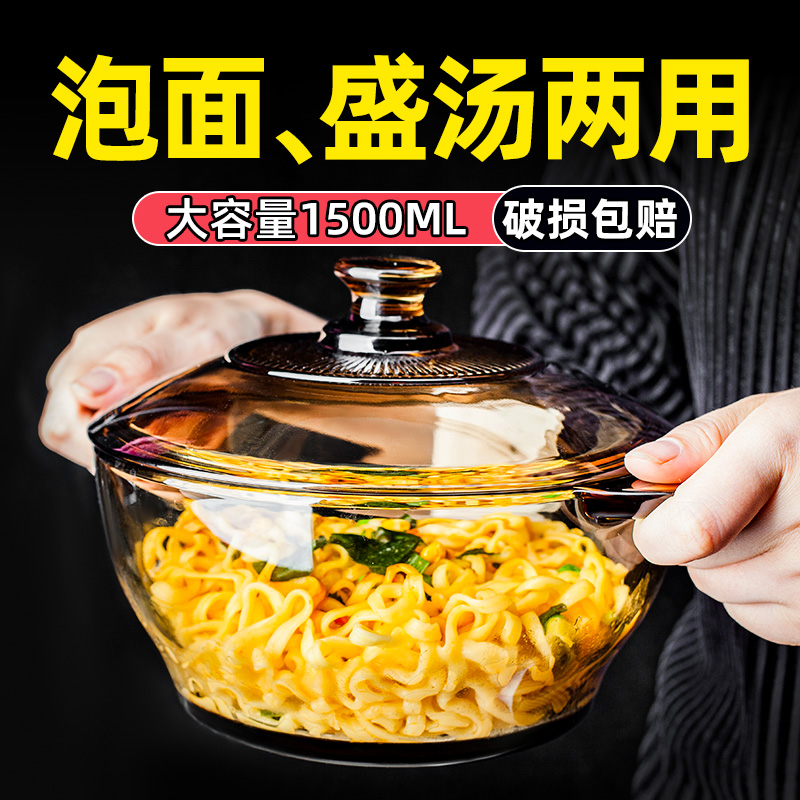 汤碗家用2021新款玻璃碗带盖泡面碗宿舍用学生ins风大碗大沙拉碗