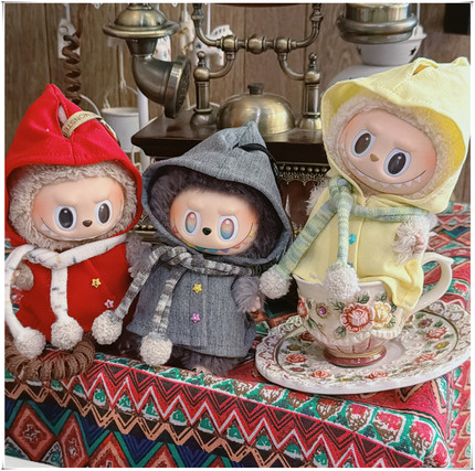 一二三代labubu娃衣17cm拉布布坐坐派对卫衣帽子马甲背心斗篷装扮