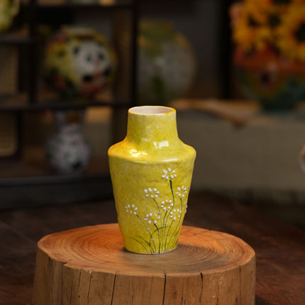 『049』2052-立体小白花黄底色瑞意花瓶