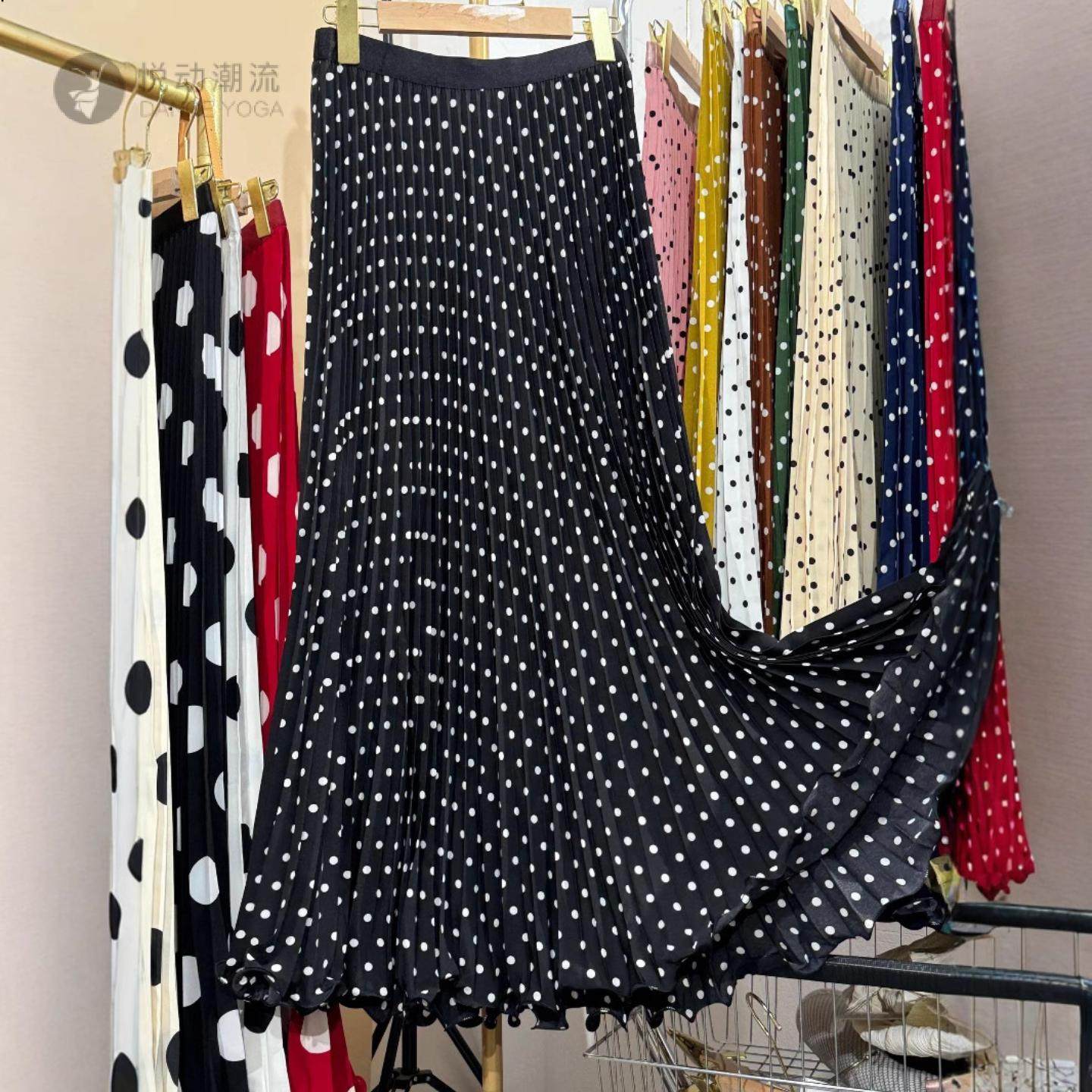 多色夏季日韩新款雪纺时尚高腰显瘦百褶波点中长款半身裙女