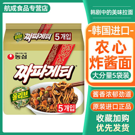 韩国进口农心炸酱面140g*5袋 韩式拉面泡面 传统酱黑色拌面方便面