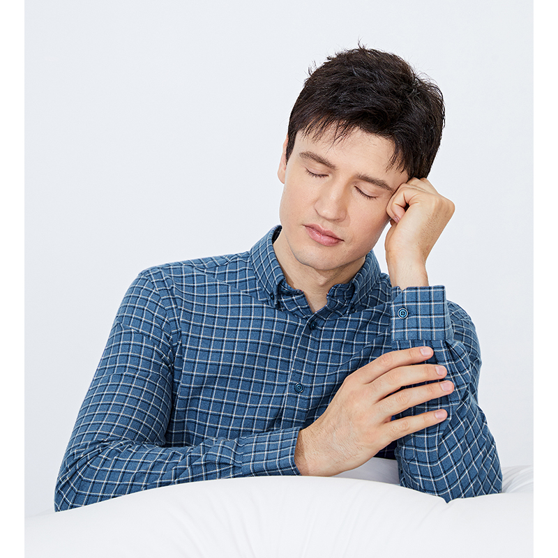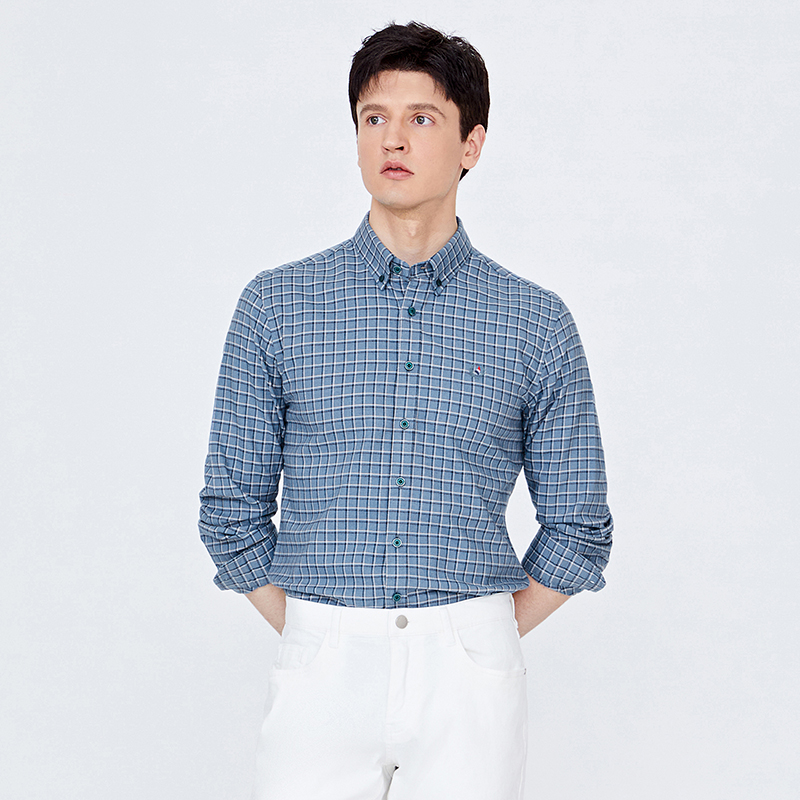 [磨毛]Navigare意大利小帆船秋季新款格子衬衫男长袖蓝色休闲衬衣