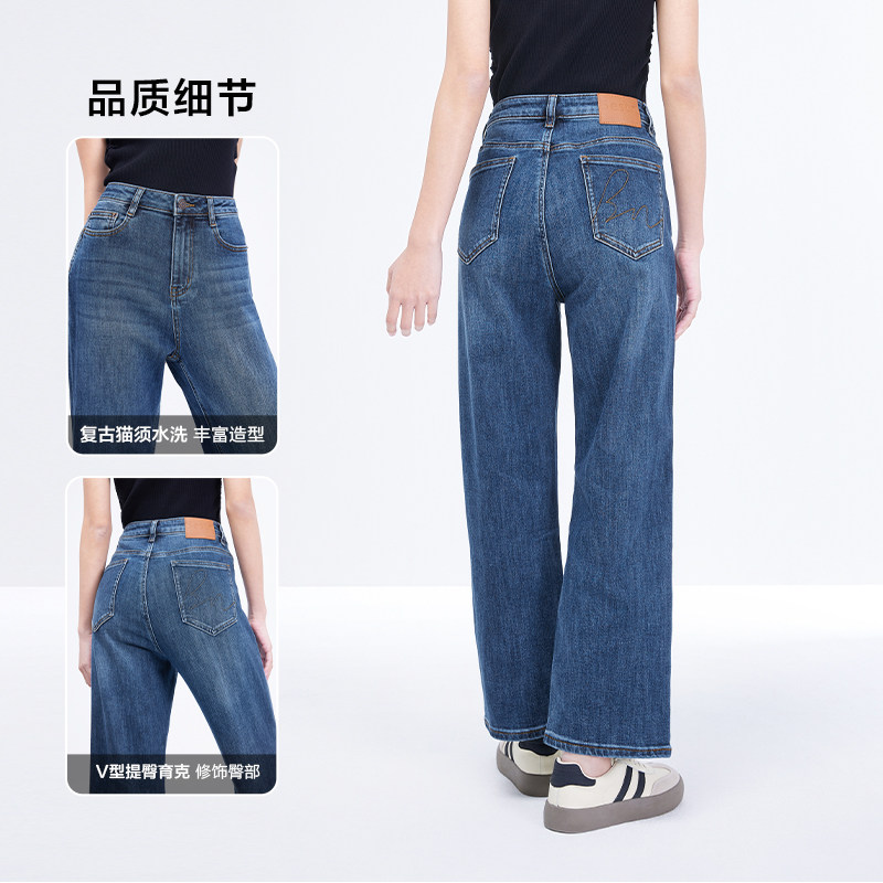 百斯盾官方女装法棍裤春秋新款显瘦显腿长不易褪色宽松九分烟筒裤
