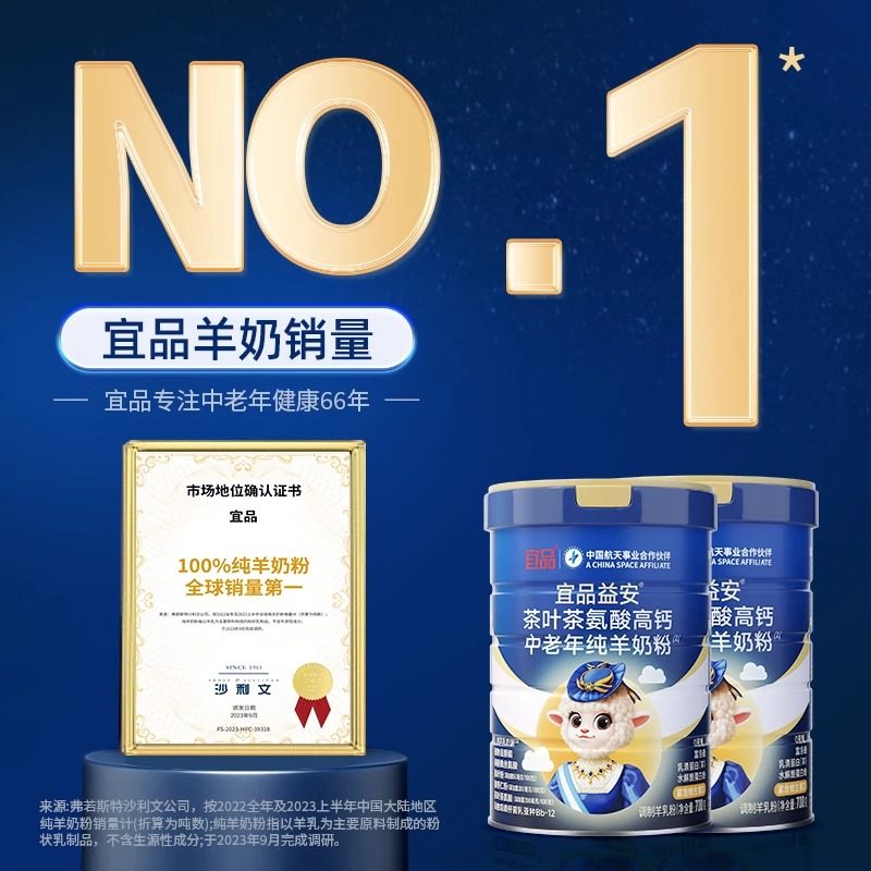 【自主入睡】宜品益安中老年睡眠高钙无蔗糖益生菌纯羊奶粉700g