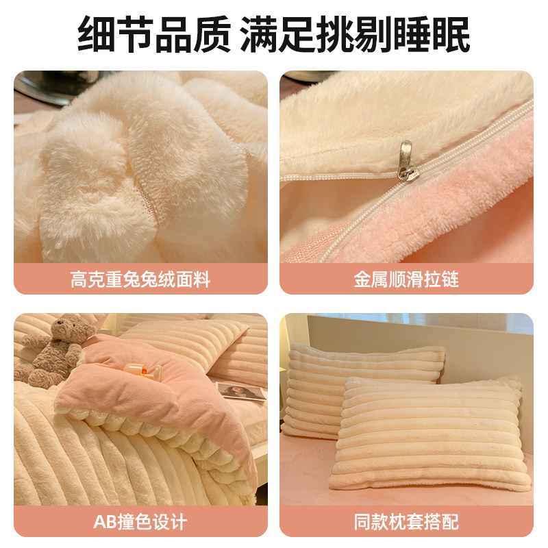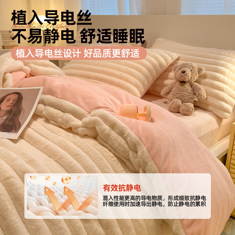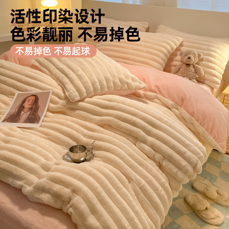 冬季加厚牛奶绒床上四件套加绒珊瑚绒床单兔兔绒被套2025新款床品