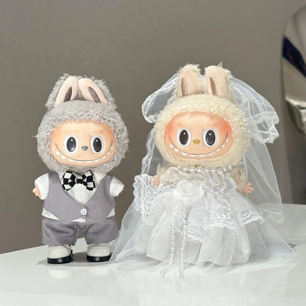 适用17cm拉布布labubu挂件公仔灰色西装白色婚纱裙子替换装娃衣服