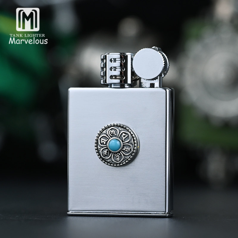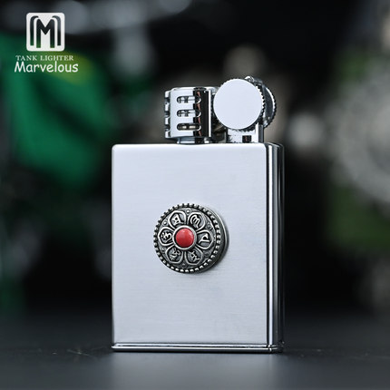 日本玛乐思/marvelous复古怀旧925银转盘砂轮煤油打火机送人礼物