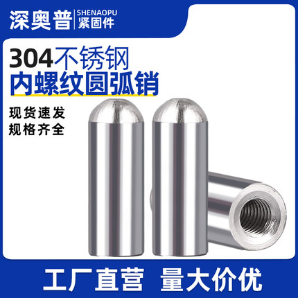 304不锈钢内螺纹圆头圆柱销内牙销钉高精度定位带孔销子M5M6M8M10