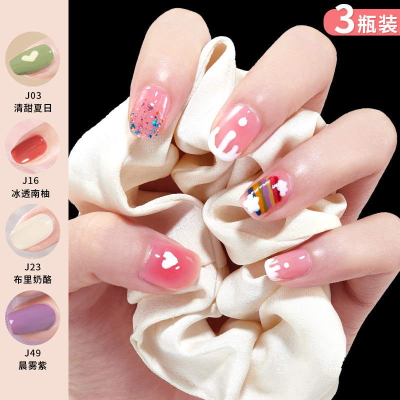 3瓶送1指甲油2024年新色秋冬透色系免烤快干持久可剥撕拉美甲套装
