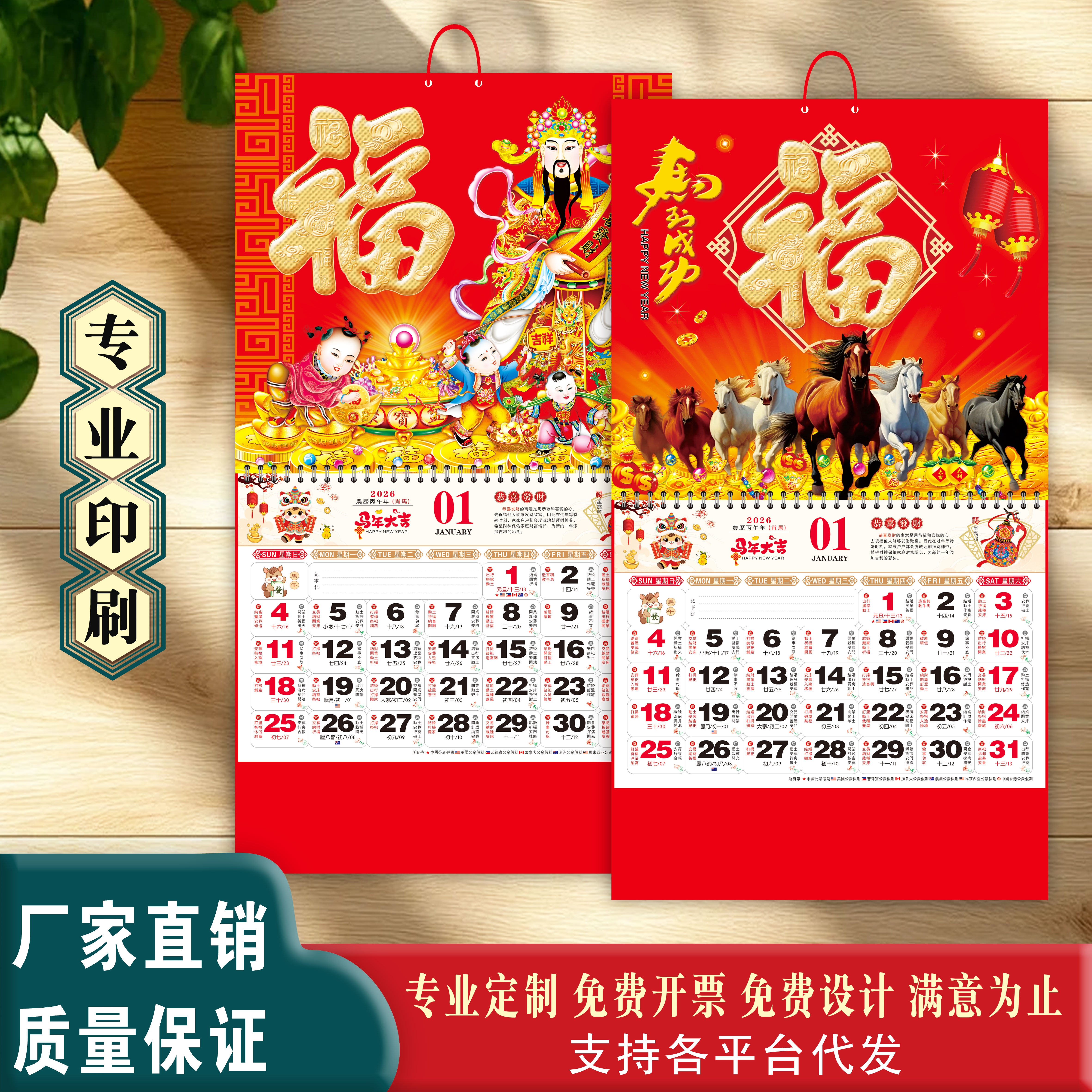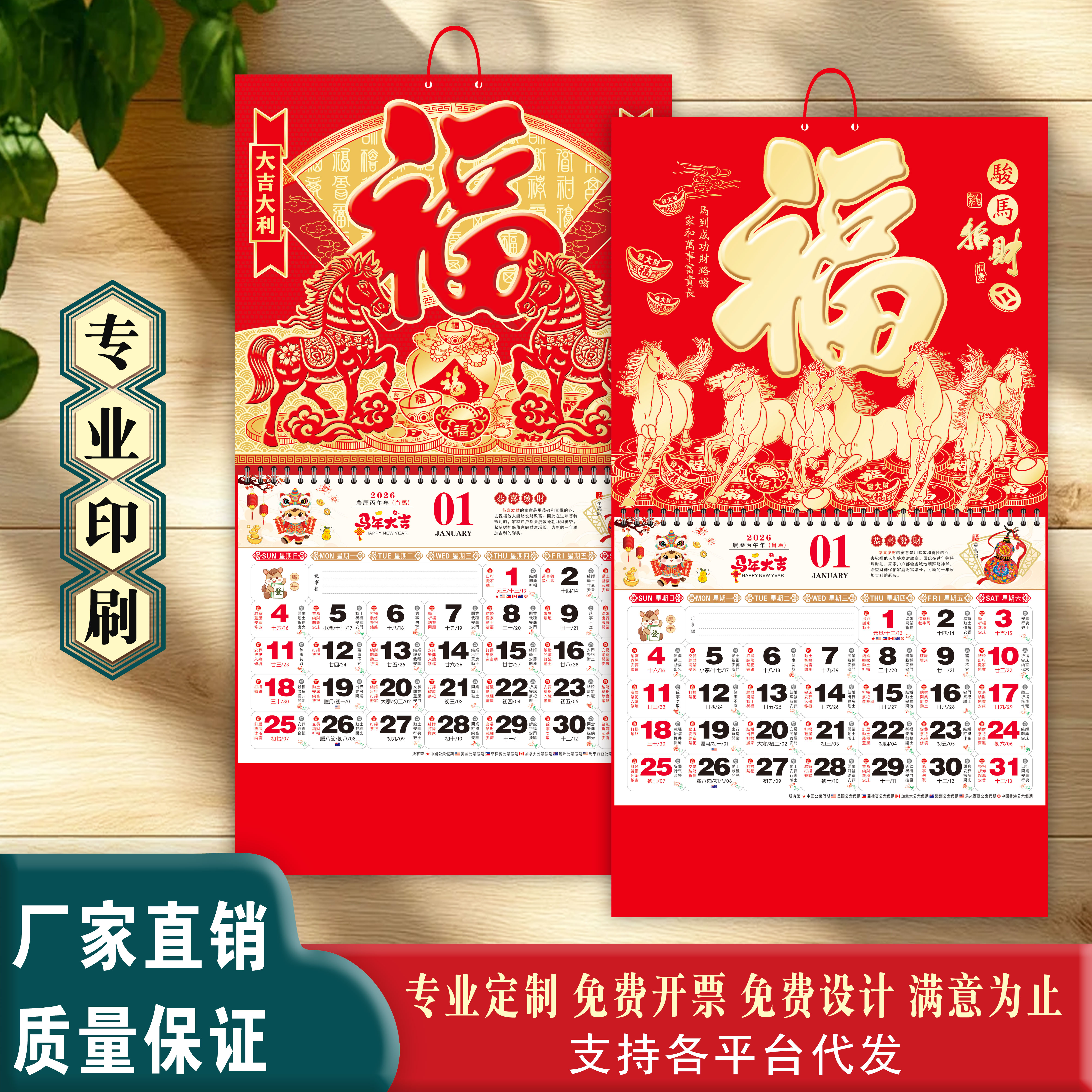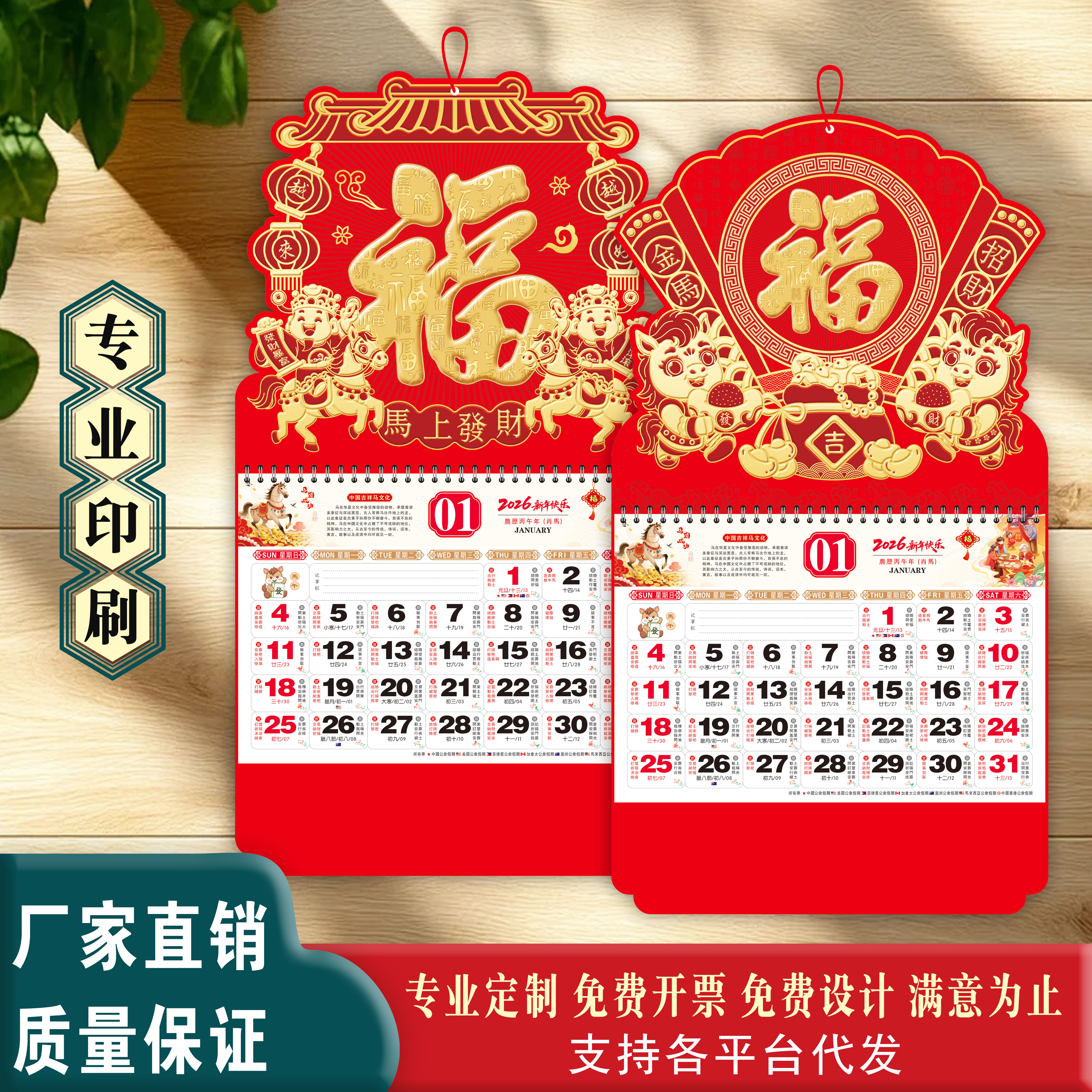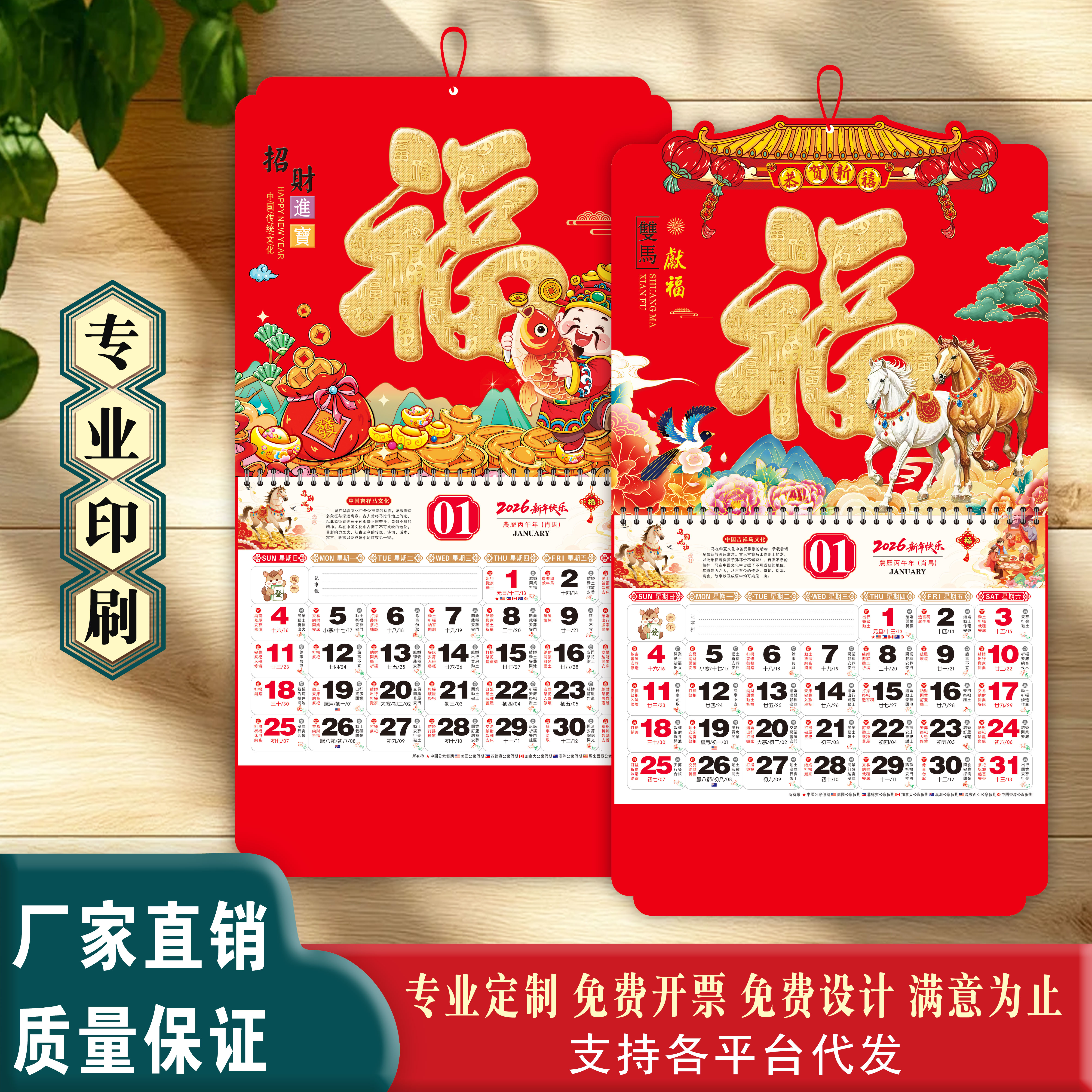 2026年马年新款挂历定制金箔福字月历手撕日历广告定做吊牌礼品