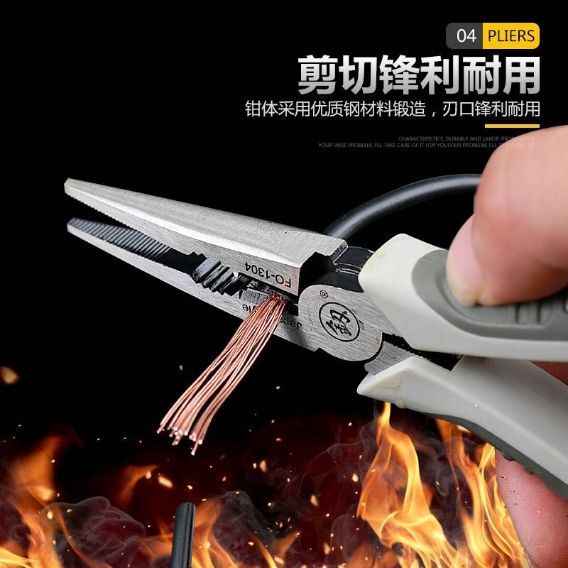 工业级尖嘴钳钢丝钳多功能加长尖头钳子电工剥线6寸家用