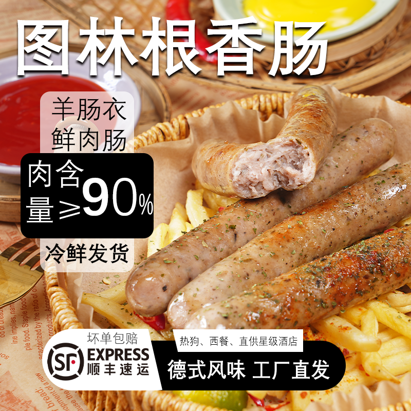 德式图林根香肠1.4kg德国风味罗勒叶热狗肠西餐早餐肠烘培肠商用