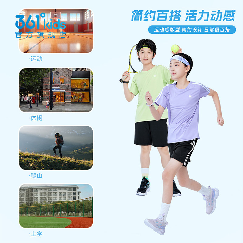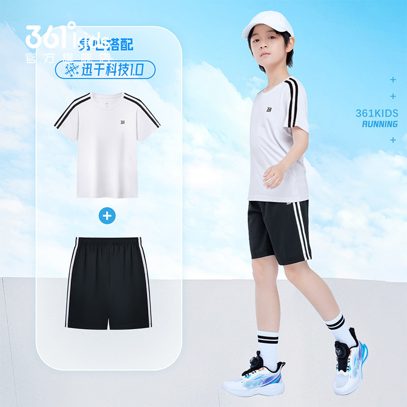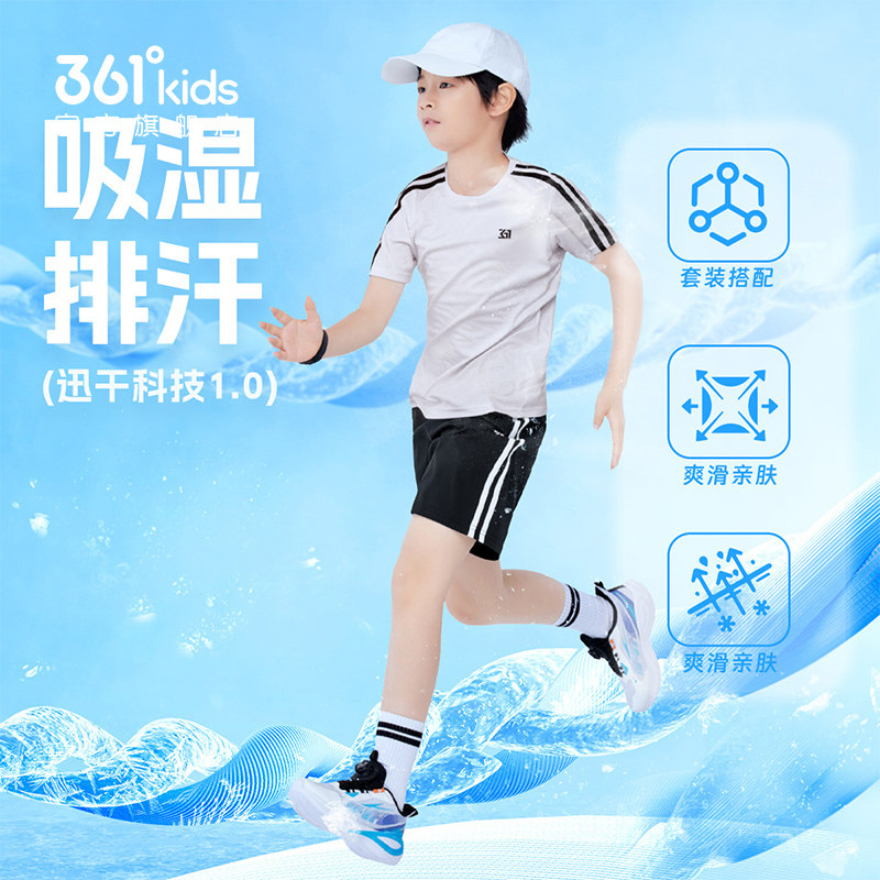2件装361童装男女童运动套装冬季新款速干短袖透气短裤套装两件套